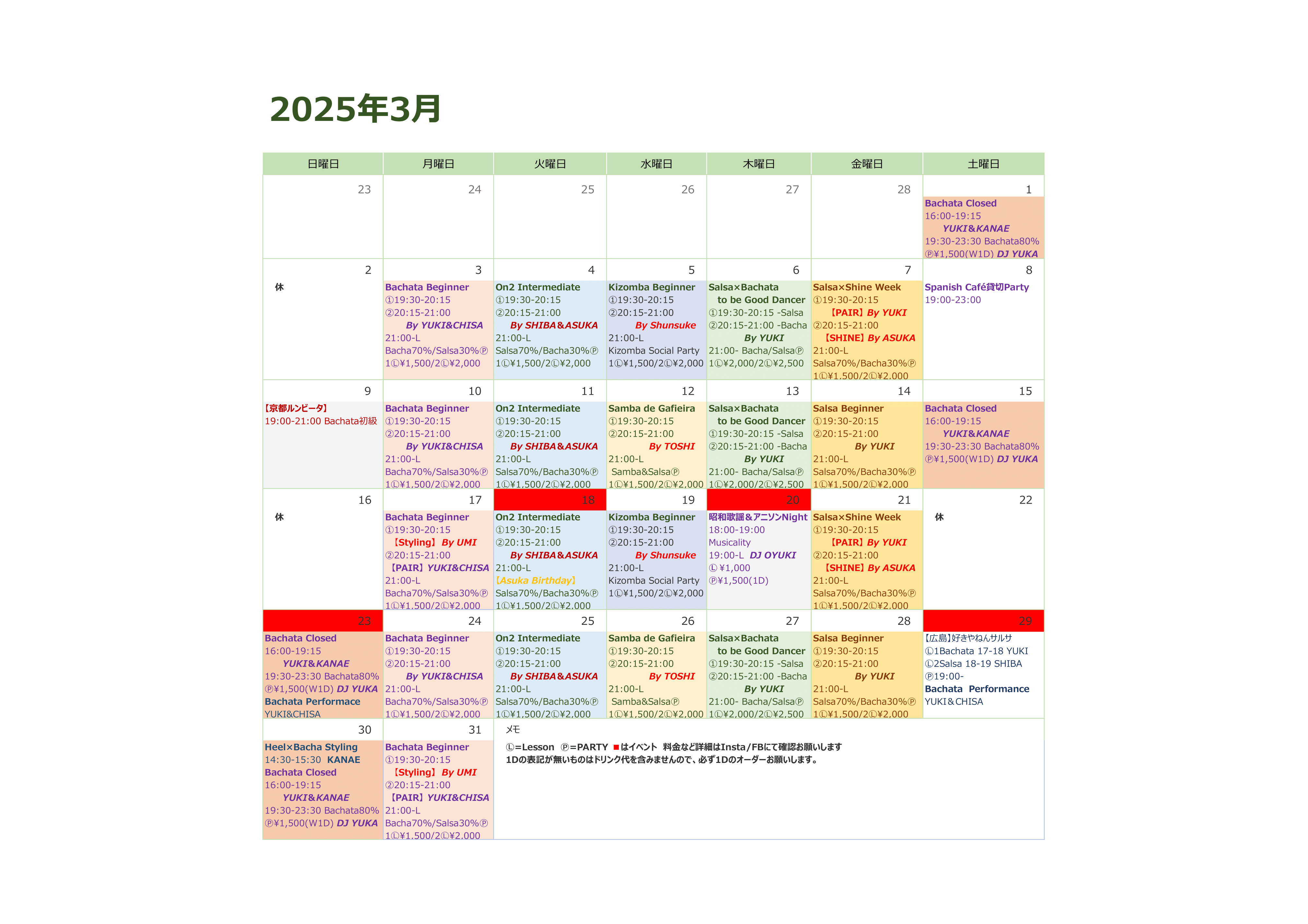 【3月のスケジュール】