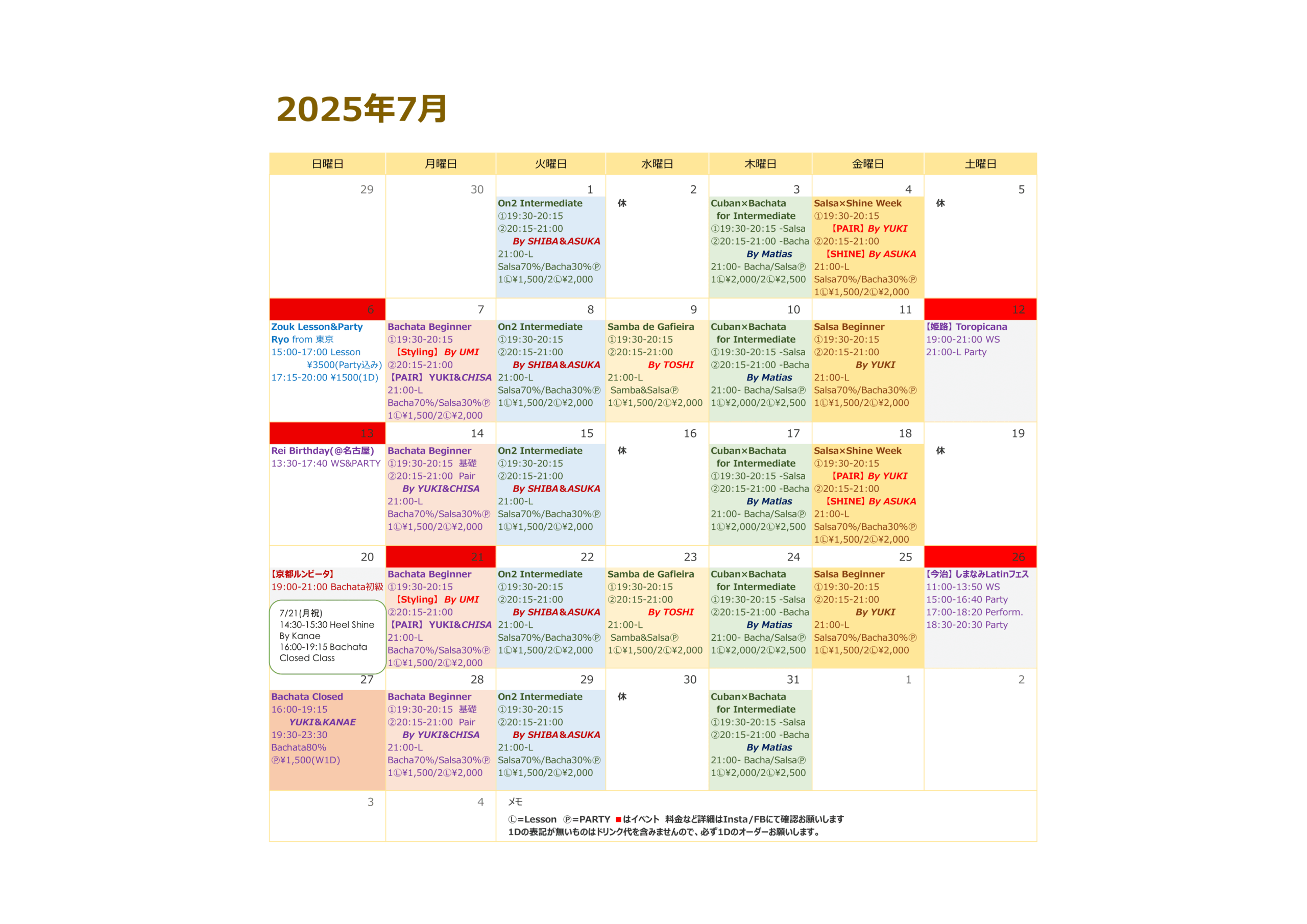 【7月のスケジュール】