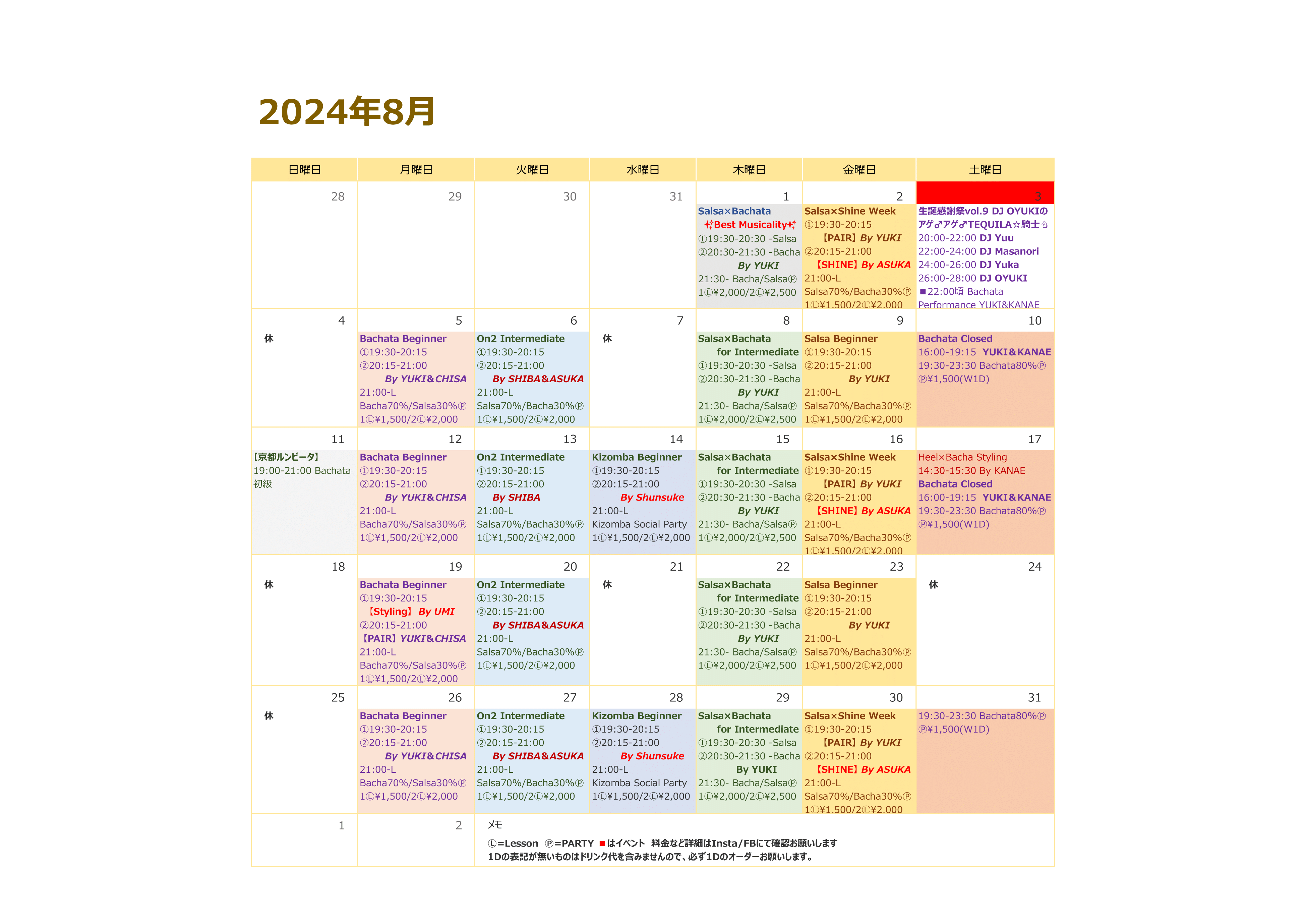 【8月のスケジュール】